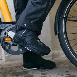 - Een heupkoord en mouwlussen voorkomen dat de poncho wappert tijdens de fietsrit.