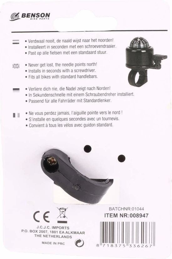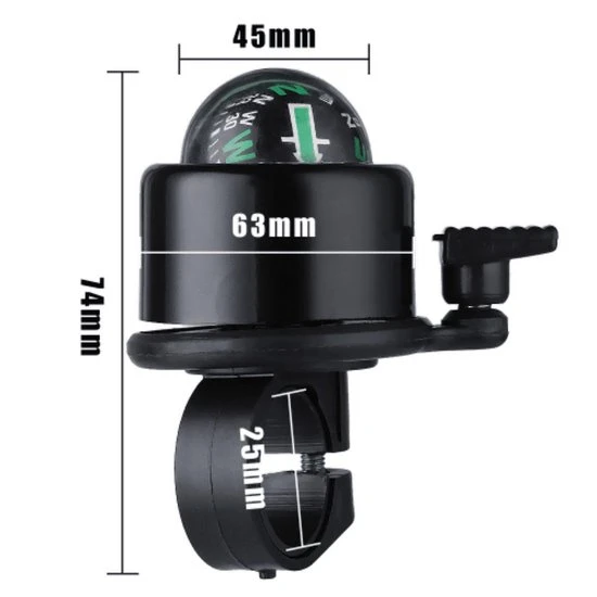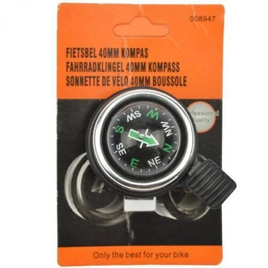 Fietsbel met ingebouwd kompas. Ideaal voor navigatie gebruik voor de ori?ntatie (bos, weg & stad, etc.). Met deze bel bent u veilig op de fiets ?n kan u de juiste richting aanhouden.