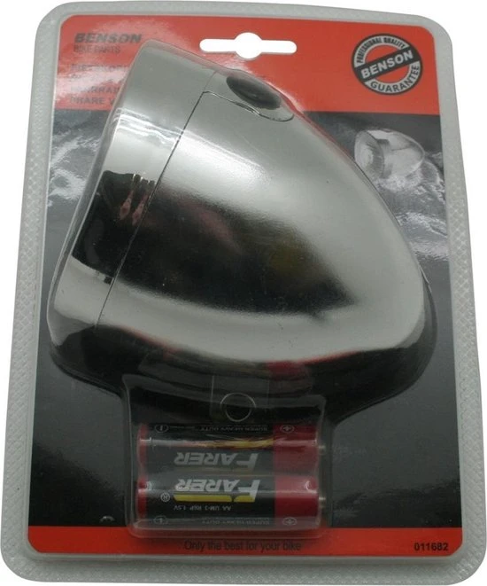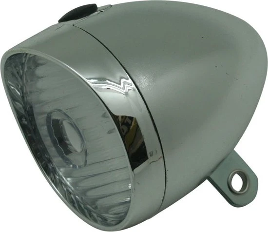 Deze led koplamp is de ideale vervanger voor de traditionele koplamp die werkt op 2 x AA batterijen. De chromen Classic Lamp is een klassieke batterij koplamp en is d.m.v. een schakelaar aan/uit te zetten. De basic 1 LED batterij-koplamp heeft een lichtopbrengst van 4 lux en is geschikt voor retro- en omafietsen. De koplamp is prettig in gebruik door de comfortabele drukknop en eenvoudige batterijwissel. Bovendien is deze fietskoplamp eenvoudig te bevestigen aan je fiets!