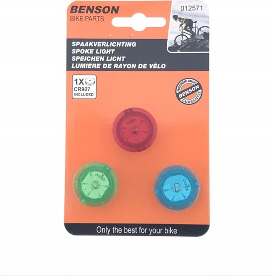 Dit setje fietsverlichting bestaat uit 3 spaak lampjes en De heeft 3 standen: aan / knipperen / uit. Monteren kan makkelijk door het te klikken op de spaken. De spaaklampen zijn van kunststof. Deze set is inclusief 1 x CR927 knoopcelbatterij.