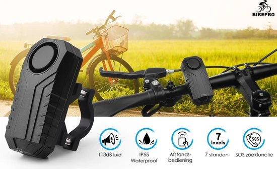 Wil jij jouw fiets ook op de best mogelijke manier beveiligen? Dit is vanaf nu mogelijk dankzij Multifunctionele Fiets Alarm van BikePro. Dit simpele alarm zorgt er met 1 druk op de knop voor dat niemand aan jouw eigendom komt. Monteer het alarm met meegeleverde montagekit op een onopvallende plek op o.a. je fiets, scooter of e-bike.
