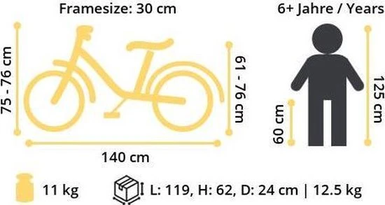vanaf ca 125 cm lengte (6-9 jaar) | zadelhoogte: 62 – 76 cm | stuurhoogte: 75 – 76 cm