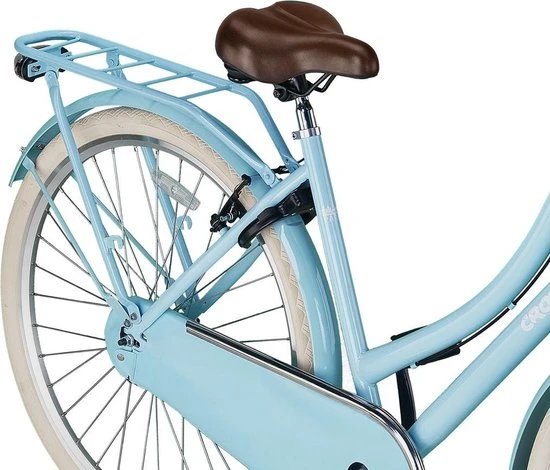 Crown Paris Transportfiets 28 inch 53cm Sky BlueOnze Crown fietsen zijn nog niet afgemonteerd en worden in een doos verstuurd. Zie de handleiding onderaan voor instructies. Crown Paris Transportfiets 28 inch 53cm Sky Blue Crown Paris Transportfiets 28 inch Sky Blue ? Een degelijke transportfiets voor een scherpe prijs! De Crown Paris is praktisch en fijn om mee te rijden. Het frame is stevig en bestaat volledig uit staal. De voordrager is ook gemaakt van dit materiaal en is bevestigt met een balhoofdbevestiging. Op de voordrager kan met gemak een tas gezet worden. Zo kan deze makkelijk mee op fiets! De voordrager is ook uit te breiden met een krat of mand. Hierdoor wordt de bagage ruimte alleen maar groter en kunnen er ook losse spullen mee op de fiets! De V-brake handremmen zorgen voor een veilige rit, hiermee kunt u altijd betrouwbaar vaart minderen. Met het ringslot zet u de fiets snel op slot wanneer u deze wilt parkeren. Let er wel op dat dieven deze fiets helaas net zo mooi vinden als wij. Een extra kettingslot is daarom altijd aan te raden. De verlichting heeft LED lampen en werkt via losse batterijen. Stuurstabilisator: Een stuurstabilisator zorgt voor extra stabiliteit, super handig in combinatie met een voordrager zodat je stuur niet omklapt Dubbele standaard: Een dubbele standaard zorgt voor extra stabiliteit op je fiets Voordrager: Geschikt voor een mand of krat. Ideaal om je boodschappen of schooltas overzichtelijk en veilig mee te vervoeren Gesloten kettingkast: Een gesloten kettingkast is niet alleen netjes afgewerkt maar is ook onderhoudsvriendelijk en houd je kleren lekker schoon Geen versnellingen