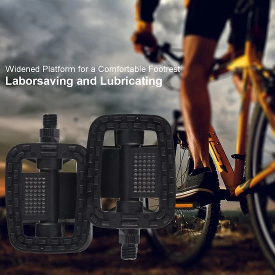 ? LICHTGEWICHT & ANTI-SKID ? De mountainbike-pedalen zijn gemaakt van nyloncomposiet en zijn hol van binnen om het gewicht te verminderen met behoud van duurzaamheid. De convex-concave punten aan beide zijden van de pedalen verhogen de wrijving en hechting om slippen te voorkomen.