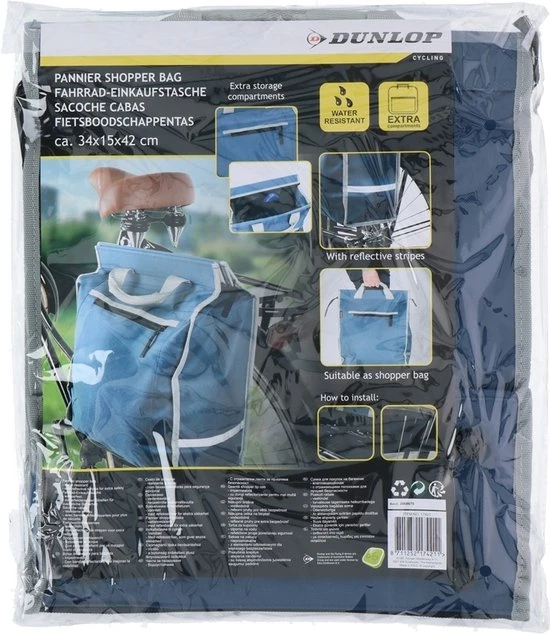 Deze handige fietstas met ritssluiting van DUNLOP kun je ook gebruiken als boodschappentas. Je haalt hem van je fiets af, gaat ermee winkelen en klikt hem vervolgens weer aan je bagagedrager. Ideaal!