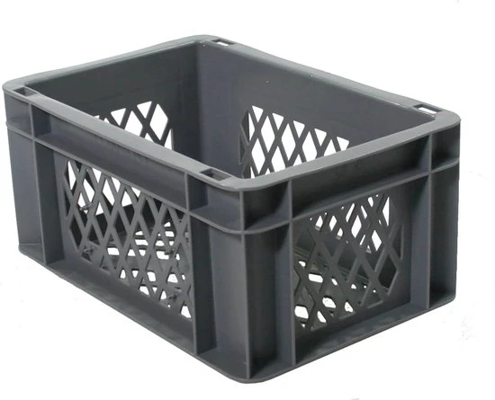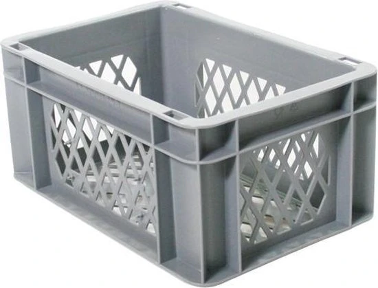 transport / bagage krat klein mini kunststof grijs, afmetingen: Buitenmaat 300x200x145 Binnenmaat 252x152x133