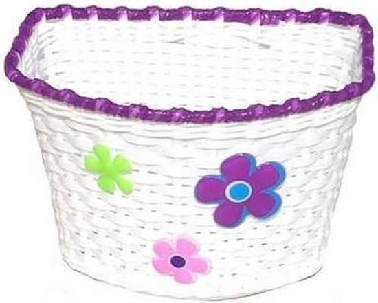 Dit witte fietsmandje is opgevrolijkt met de mooiste bloemen. Het is inclusief herbruikbare strips, zodat kinderen de fietsmand makkelijk op de fiets kunnen monteren. Ook verkrijgbaar in roze Leeftijd: Vanaf 3 jaar Afmetingen: 24 x 16 x 16 cm