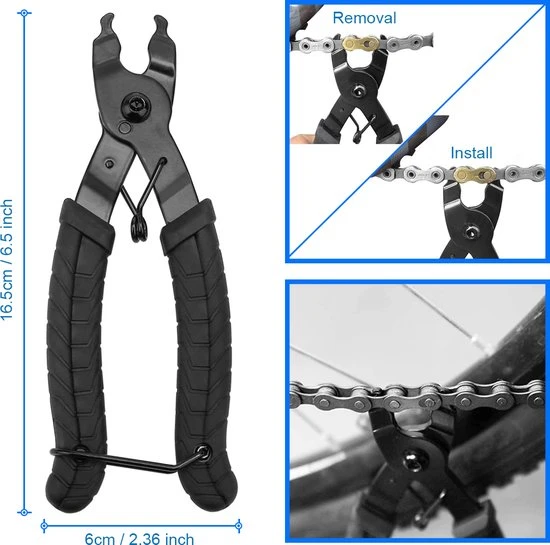 - Fietskettingtang: Gemaakt van hoge kwaliteit roestvrij staal met een krasvrije zwarte afwerking en super comfortabele rubberen Anti-Slip Handgreep. Gebruik de tang voor het snel verwijderen van verbindingsschakels. Een geavanceerd gereedschap voor het openen en sluiten van de master link remover en connector