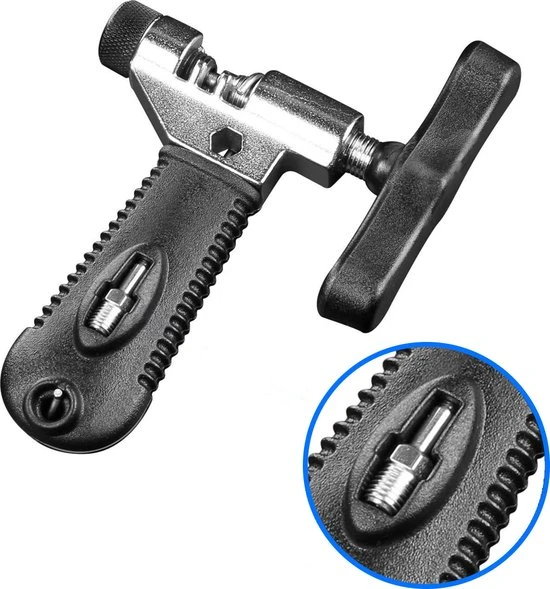 - Fietsketting breker: Gemaakt van hoogwaardig roestvrij staal dat super sterk is en niet zal buigen. Het metalen frame heeft een comfortabele rubberen anti-slip grip. Bevestig de kettinghaak aan de ketting voordat je de ketting breekt. Nadat de kettinghaak is ge?nstalleerd, kies je welke sluiting moet worden verwijderd en verwijder je de pin met de kettingbreker.