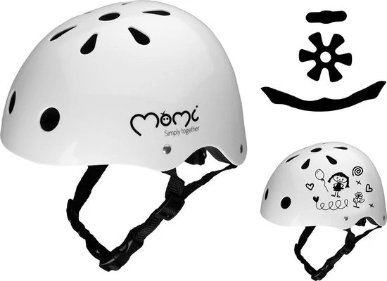 Laat je kindje veilig spelen op zijn loopfiets, driewieler of kinderstepje met deze MoMi kinderhelm. De kinderhelm is verstelbaar van 47 tot 58cm zodat je deze kan aanpassen aan het hoofd van je kindje. De kinderhelm is lekker licht van gewicht. De binnenkant is voorzien van schuim voor extra comfort en veiligheid. De Mimi helm is voorzien van 11 ventilatie openingen wat zorgt voor veen goede luchtcirculatie.