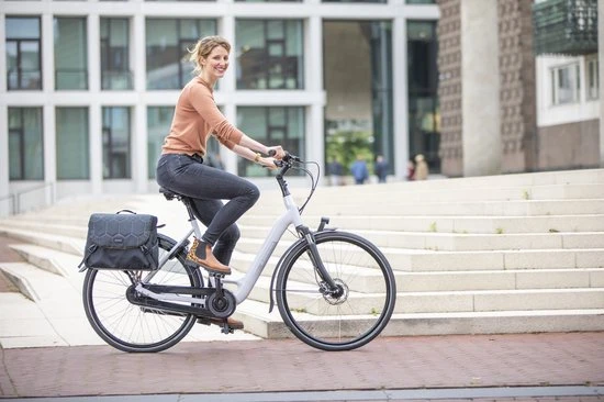 De tas is afgewerkt met reflectie voor extra veiligheid in het donker. Daarnaast is de schouderband verstelbaar en afneembaar. Zo voorkom je dat de schouderband tussen de spaken kan komen.