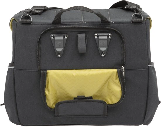 De fietstas wordt aan de bagagedrager bevestigd met New Looxs kunststof haken. Dat maakt deze tas geschikt voor vrijwel alle fietsen, ook elektrische. Je kunt de tas extra vastzetten met het klittenbandje tussen de haken. Als je de tas van de fiets haalt, dek je de haken af met een ritsvakje. Hierdoor heb je geen last meer van de haken en ziet de tas er uit als een gewone schoudertas!