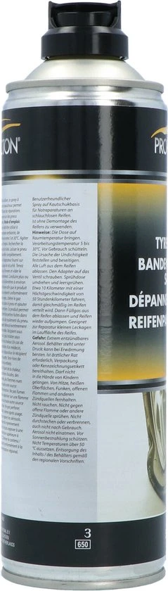 De bandenreparatie spuitbus is te gebruiken zonder demontage van de band. Deze reparatie is een nood oplossing geen permanente oplossing. Inhoud 500ml.