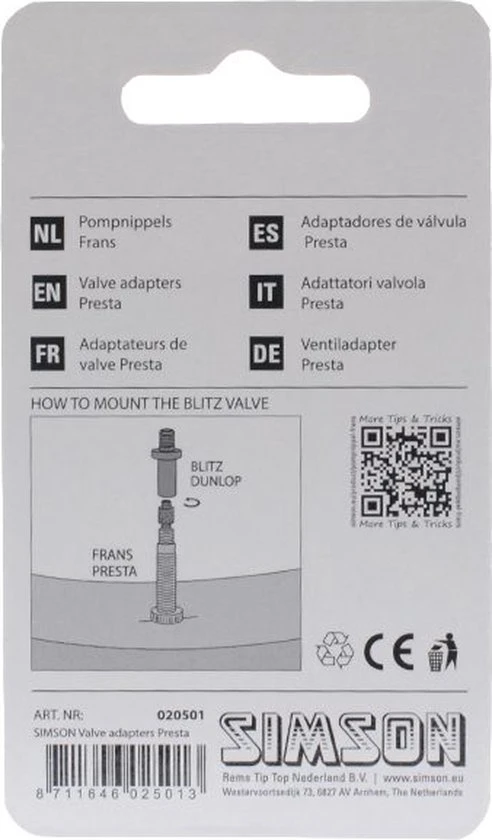 Simson – 2 x oppompverloopnippel voor Frans Ventiel – Bruin