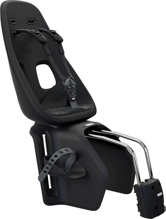 De Thule Yepp Nexxt Maxi Frame Mount Obsidian is een fietszitje dat ontworpen is voor achterop de fiets door middel van een zadelbuisbevestiging. Dit zitje is te gebruiken vanaf 9 maanden tot 6 jaar en tot 22 kg. De zitjes hebben een zachte, schokabsorberende zitting en bieden uw kind een veilige rit door de goede pasvorm en verstelbare vijfpuntsgordel met zachte schouderpads. De Thule Yepp Nexxt Maxi FM is een robuust zitje waarin een harde buitenkant wordt gecombineerd met een zachte zitting voor optimaal comfort voor het kind. Zet uw kind zeer snel, gemakkelijk en handig vast met de magnetische kindveilige sluiting. Ook het gemak en flexibiliteit zijn verzekerd naarmate het kind groter wordt dankzij de met één hand verstelbare voetsteunen en voetriemen. Ook door de ingebouwde reflector bent u beter zichtbaar in het verkeer. De zitjes zijn makkelijk te reinigen en droog te houden dankzij de waterafstotende materialen van het fietszitje. De Thule Yepp Nexxt Maxi FM is snel en gemakkelijk te bevestigen van het kinderzitje op uw fiets en voorzien van een slot.