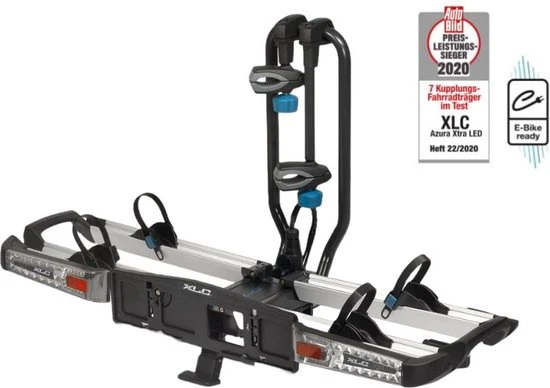 Ik pak mijn koffer en neem mee.. de elektrische fietsen! Met de kantelbare en inklapbare XLC-fietsendrager Azura Xtra LED. Deze kan in een mum van tijd op elke trekhaak worden bevestigd en aangesloten met 13 of 7 polige stekker en biedt ruimte voor twee normale of elektrische fietsen van maximaal 30 kg elk. Deze variant van de XLC Azura is kantelbaar zodat je gemakkelijk bij de spullen in de achterbak kan, ook als er twee fietsen op de drager staan. Om dieven geen kans te geven, zijn zowel de drager als je fiets afsluitbaar.